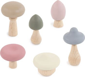 6pc Wood and Silicone Mushroom Toy Set