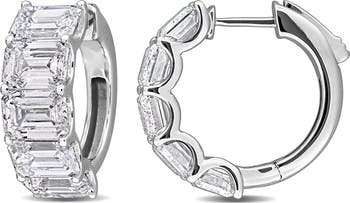 Featuring lab-grown diamonds, these hoop earrings in 14k white gold feature a total of ten emerald-cut 6x4mm lab-grown diamonds beautifully spaced along the the hoops. These earrings combine modern technology with classic design, making them a stunning addition to any jewelry collection.