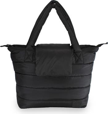 Keep essentials for both you and your little one within arm's reach in this water-repellent puffer tote with an adjustable crossbody strap for carrying ease. A removable changing pad and zip pouch make diaper changes easy while traveling.