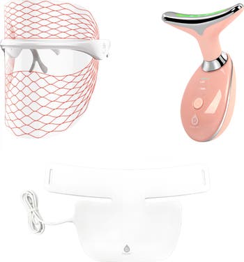 Elevate your beauty ritual with the complete Pursonic 7-in-1 LED Light Therapy Suite. This high-performance collection combines three innovative tools—a full-face mask, a sculpting wand, and a targeted neckplate—to deliver a comprehensive, spa-quality transformation. Designed to firm, clear, and brighten, this set targets everything from deep-set wrinkles and sagging to stubborn acne and uneven texture.