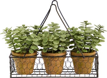 Accent any area of your home with this cute Mini Jade Artificial Plant in a Hanging Planter. Inspired by nature, add this set of 3 in any room, even those compact spaces in need of color. Crafted from high-quality materials, feel free to shape the bendable branches in your area. Standing 7' from a hanging planter, display in any space. Perfect for modern farmhouse or any other style decor. Silk plants are manufactured using synthetic materials, such as polyester material or plastic, and are well designed and constructed to be life-like in appearance. This item will need to be re-shaped when removed from the secure box to allow it to reach its fullest size. Your artificial plant will look beautiful for years to come; simply wipe clean with a soft dry cloth when needed.