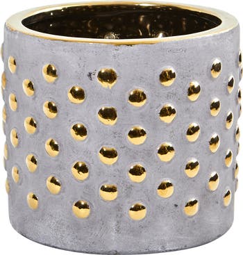 7-in Regal Stone Hobnail Planter with Gold Accents
