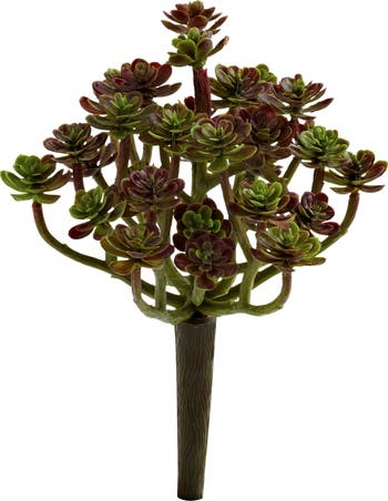 Mysterious and alluring, the thick burgundy and green leaves of this 7-inch artificial sedum succulent plant will add depth and elegance to any room's decor. With a set of eight included, these pieces can be bundled together in a matte black planter for a full look. Place it upon a bookshelf or mantelpiece to contrast and add a dark accent piece to a living room.