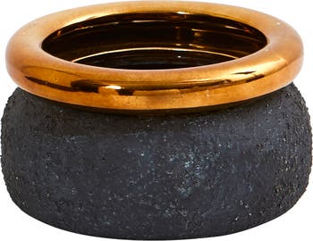 Enhance your home with this Rough Textured Matte Black Vase with Bronze Rim. Trendy and in style, the black matte is accented by the bronze rim and brings a mid-century vibe to all spaces. Reaching 7” wide, DIY your dream arrangement, house some hydrangea, loose twigs, or branches for a modern look.