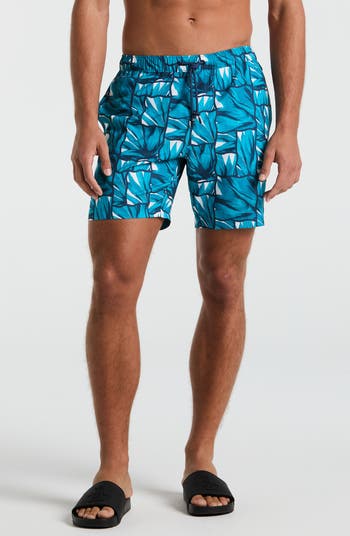 A colorful print will have you feeling ready for a vacation in these slim-fit swim trunks. They dry quickly and have plenty of stretch for added confidence in the water and on land.