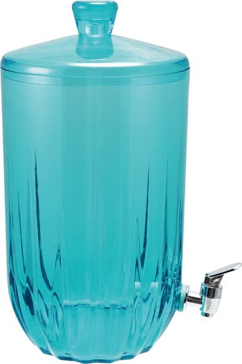 - A vibrant acrylic beverage dispenser in a refreshing aqua color