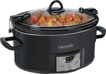 An easy way to take your slow-cooked meal on the road. The Crock-Pot Programmable Cook & Carry 7-Quart Oval Slow Cooker has an easy locking gasket lid that will help you get to your final destination without making a mess. Ideal for all your favorite slow cooker recipes, with 7-quart capacity and programmable time settings to accommodate varied cooking needs and time constraints. This slow cooker will keep food safe on-the-go with hinged locking lids and carrying handles. With these features, there’s no need to repack food in other containers - making travel a breeze. This slow cooker also has removable oval stoneware that can double as a serving dish.