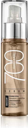 700 Keratin + Kale Hair Serum is a lightweight, non-greasy, leave-in styling serum that helps to strengthen, repair, and smooth hair that’s damaged or is prone to frizz. This moisturizing styling aid works on wet or dry hair to smooth and hydrate the cuticle with Keratin & Kale to eliminate the signs of frizz, damage & split ends. It also provides heat & UV protection. KEY BENEFITS • Deeply moisturizes for ultra-smooth and soft results • Restores depleted Keratin for added strength and elasticity • Helps repair and smooth damaged hair • Replenishes hydrating oils for healthy shine • Color-safe • SLS, SLES, Paraben, Sodium Chloride & Cruelty-free KEY INGREDIENTS Hydrolyzed Keratin • Restores depleted Keratin • Strengthens and smooths the hair cuticle • Reduces frizz and split ends Kale Extract • Calms frizz • Aids in cell rejuvenation • Rich in Vitamins A, C & K to promote healthy hair growth HAIR TYPE Coarse, chemically treated, damaged, dry, or frizzy hair. HOW TO USE • Pre Blow Dry: Apply two + pumps into palms depending on hair length. Distribute evenly throughout damp hair. Blow dry & style as desired • As a finisher on dry hair: Work a small amount into the mid to ends of the hair to control frizz, smooth, and style