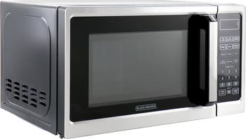 This professional-style Black + Decker 0.7 Cubic Foot 700 Watt Stainless Steel Microwave features 10 power levels, removable glass turntable and a spacious interior. Optimally cook or reheat six of the most popular food items with the touch of a button. Choose power levels up to 700 watts.The large LED digital display has a clock function and can also display a countdown timer as well as the cooking time remaining.Easily open the microwave with the push-button. Item Dimensions: 17.00" x 11.50" x 9.50" Item Weight: 21.25lbs