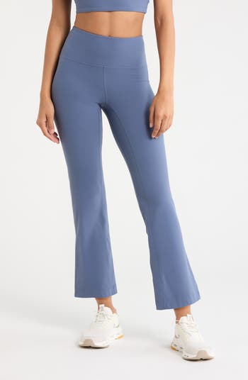 Work out or chill out in these sporty high-waist leggings punctuated with flared legs.