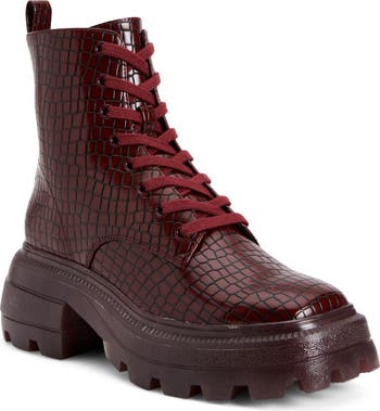 A high-shine patent combat boot sits on a flexible lug sole and is armed with a not-so-secret side zip closure to have you out the door in no time.