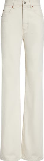 A high waist and bootcut silhouette define softly flared jeans cut from Italian nonstretch denim and cast in a milk-inspired wash.
