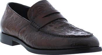 Paisley patterns are stamped into supple leather to create a classic penny loafer with modern style.