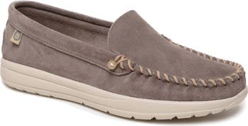 A whipstitched toe enhances the casual appeal of a classic loafer that's well cushioned and resistant to water and stains.