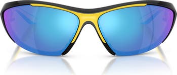 Aerodynamic contours shape the semi-rim cat-eye silhouette of these sporty sunglasses accented with bold, beveled temples for a high-energy finish.