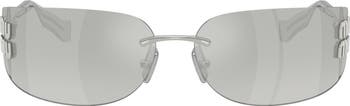 Rimless frames and a wraparound profile add futuristic elements to Italian-made sunglasses fashioned with adjustable nose pads and bold logo hardware at the temples.