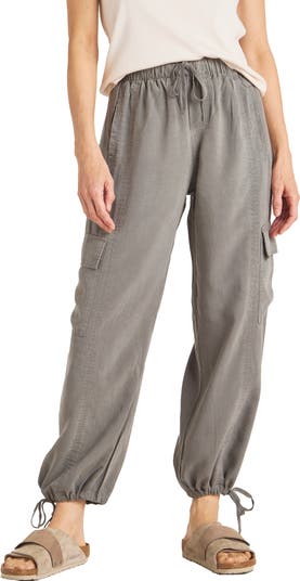Slip into streetwear style with these roomy cargo pants cut from a lightweight fabric and designed with drawstrings at the waist and hems.