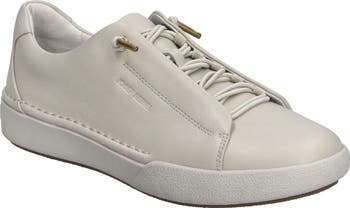 Elasticized laces and a slip-on design offer easy wear in a leather sneaker grounded by a cushioned footbed and classic cupsole.