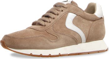 A wavy contrast panel swipes the side of a supple suede sneaker that exudes heritage style.
