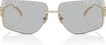 Add a touch of glam to your look with these Italian-made sunglasses crafted in a geometric silhouette and trimmed with sparkly stones on the frames and bridge.