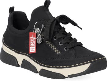 A side zip closure allows for easy on and off in this shock-absorbing sneaker.
