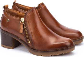 Elastic goring and a side zipper ensure easy on and off in this go-to bootie that boosts you on stacked heel.