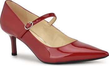 A svelte vamp strap details a classic pointy-toe pump designed with memory foam cushioning and shock-absorbing technology for endless comfort.