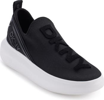 Tonal logo lettering adds subtle sophistication to a knit sneaker set on a sporty platform sole.