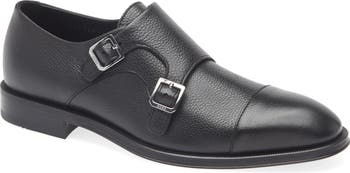 A dapper cap toe and double-buckle monk strap promote the vintage inspiration of this polished footwear essential crafted from richly grained leather.