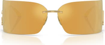 Rimless frames in a wrapped rectangular profile bring a futuristic aesthetic to Italian-made sunglasses featuring logo-accented temples and adjustable nose pads.
