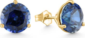 7Ct Round Blue Sapphire Studs 9mm Women's 14k Earring 3 Prong Martini Lab Grown