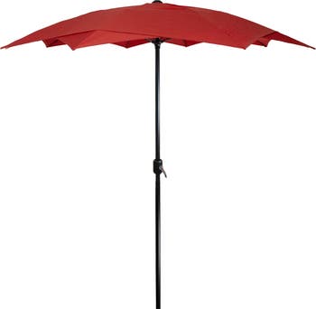 Add shade and functionality to your outdoor living space with this richly colored patio lotus umbrella. Comprising a sturdy, powder-coated aluminum frame with fiberglass ribs, this tall, modern-style umbrella is built to last a lifetime. The crank opening enables easy use and offers the perfect coverage for a table and chairs. Features: Umbrella shape: lotus Canopy color: terracotta Frame and pole color: brown Unique "lotus" shape is achieved by layering one 5-point star shape on another for a total of 10 points around Diameter of open umbrella: 8.85' Height: 8.2' Pole diameter: 1.5" (38mm) Lift: hand crank 10 ribs Material(s): 160 gram polyester canopy/powder-coated aluminum pole/fiberglass ribs Note: Umbrella only, base is not included