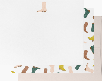Elevate everyday correspondence with these beautifully designed flat notecards. Featuring a whimsical cowboy boot pattern on the back and paired with coordinating light pink envelopes, these sets bring a thoughtful and western touch to thank-you notes, invitations, or just-because messages. A stylish addition to any stationery collection, these notecards are perfect for gifting or restocking.