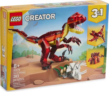 This LEGO® Creator 3-in-1 Fierce Dinosaur (31379) building set gives kids ages eight and up everything they need to enjoy endless prehistoric adventures. This cool and detailed dinosaur toy offers three different building options with the same set of bricks. Boys and girls can choose to build a Velociraptor toy with a posable jaw, head, arms, legs and tail. This can then be rebuilt into a Stegosaurus toy that can move its neck, head and legs or a Pterosaur with posable wings, head and feet. Each model also comes with a dinosaur skull and rib cage, dinosaur eggs and a plant. After playtime, each model can be displayed as dinosaur room decor for boys and girls to share with family. This LEGO Creator set will inspire kids’ imaginations and makes a great dinosaur gift.