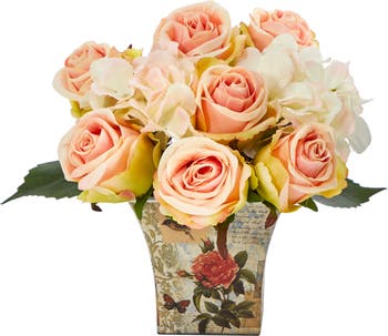 8-in Rose and Hydrangea Bouquet Artificial Arrangement in Floral Vase