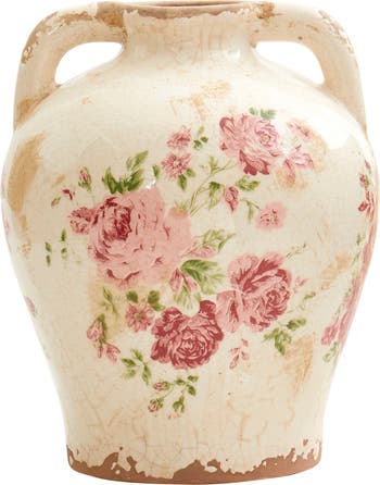 Arrange your faux-bulous flowers in this floral design jar (set of 1). The vintage ceramic planter has a homey feel with its palette of pinkish flowers against a rugged backdrop. DIY and have fun mix-matching for a country chic look that delivers that fresh farm to home style. No drainage holes and indoor use only.