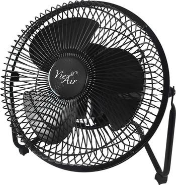 Vie Air is safe and has reliable performance with exceptional value and thoughtful innovations. With this desk and floor fan design, it allows for maximum air flow, optimal circulation and quiet operation. Made out of durable metal, it's easy to move and reposition this ventilation fan where ever you like. The powerful 3 speed motor and 360 degree tilting allows for easy air flow management. This floor fan is ideal for desk or table top use and can vent send air within any personal space. Item Dimensions: 5.50" x 9.50" x 10.00" Item Weight: 2.40lbs