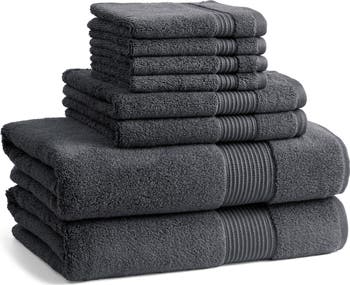 - Set includes two 30" x 56" bath towels, two 18" x 28" hand towels and four 13" square washcloths
