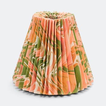 Bring a touch of easygoing elegance to your home with this hand-marbled lampshade, made using traditional techniques on recycled cotton paper. We work with multi-generational master artisans to produce our distinctive marbled lampshades; no two are ever the exact same — each one uniquely yours. Our lampshades are handcrafted in our own workshop using premium brass-plated steel and feature a spider fitting compatible with US-style lamps—we hope they light up your life.