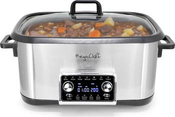 Introducing the MegaChef 8 Quart 12-in-1 Deluxe Multi Cooker with Sous Vide-the ultimate kitchen appliance that revolutionizes home cooking. This versatile multi cooker combines the functions of multiple kitchen devices into one sleek unit, making meal preparation faster and easier than ever. With an impressive 8-quart capacity and powerful 1250 watts of heating power, it's perfect for everything from family dinners to meal prepping.Equipped with an aluminum inner pot that features a non-stick coating, the Multi Cooker ensures perfectly cooked meals with minimal cleanup. Explore a variety of cooking modes, including Roast, Steam, Sauté, Slow Cook, Keep Warm, Bake, Stew, Rice, Yogurt, Delay, Manual, and Sous Vide, allowing you to create a wide range of delicious dishes. The included accessories, such as a glass lid, and baking/steaming rack, enhance your culinary experience, making it easy to achieve professional-level results at home.Say goodbye to cluttered countertops and endless dishes, and welcome the convenience of the MegaChef 12-in-1 Deluxe Multi Cooker into your kitchen. Enjoy the satisfaction of effortless, home-cooked meals without the hassle, and discover the joys of cooking with this all-in-one kitchen marvel.