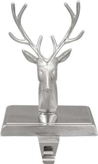 Display your Christmas stockings with a bit of glitz this holiday season with this shiny silver stocking holder. The deer sits on its shiny base and is sure to add some pizazz to your existing Christmas decor. It can be easily displayed on your mantlepiece or virtually any flat surface with an edge. This silver deer head is sure to create lasting nostalgic memories for your family! Features: Buck head stocking holder Shiny silver deer and base An 8 point buck head Weighted base for added stability while holding your stockings Metal hook in front for easy stocking hanging Dimensions: 8"H x 5"W x 4"D Material(s): metal