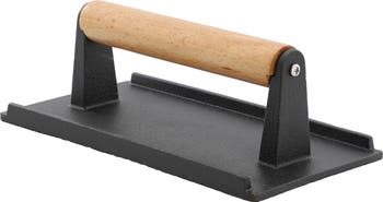 The MegaChef 8 x 4 Inch Rectangle Cast Iron Grill Press is a reliable tool for achieving evenly cooked, well-seared foods. Made from durable cast iron and pre-seasoned for immediate use, it applies steady, even pressure to help reduce curling and improve contact with the cooking surface. The rectangular 8 x 4 inch shape is well suited for bacon strips, sandwiches, burgers, and steaks, making it a practical choice for everyday cooking. Designed for versatility, this grill press is safe for use on open flames and in the oven, allowing seamless transitions between cooking methods. The cast iron construction retains heat effectively, enhancing browning and flavor while promoting consistent results. Simple to maintain with hand washing as needed, the MegaChef grill press offers long-lasting performance for both indoor and outdoor cooking.
