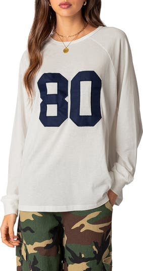 Your favorite year, your team number or your lucky number—keep 'em all guessing when you slip into the oversized comfort of this appliquéd T-shirt.