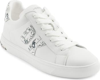 Add a fun, flashy element to your street style with this casual lace-up sneaker complete with graffiti-inspired logos and heel counter.