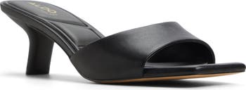 A Pillow Walk™ footbed puts cushy comfort underfoot a minimalist slide sandal set on a slightly curved, walkable heel.