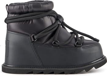 The Zembla Artic is a lace-up winter bootie featuring a quilted puffer upper, chunky knit laces, an oversized rand, an adjustable topline, and a chunky treaded platform outsole. Product Care: Metallics may scuff easily with normal wear. Keep the metallic finish looking new by avoiding moisture, extreme heat, and storing shoes in a cool, dry environment.