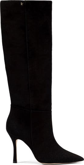 Step right up. These fierce Kate boots are all about attitude. Chic peeking out from under a dress or laid bare over jeans, the stiletto heel and pointed toe on this knee-high Larroudé pair say it all.