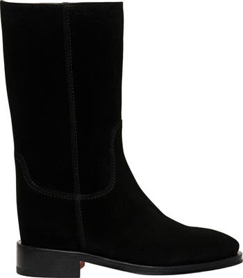 A delicate interplay of balanced lines and fine materials: this ankle boot is a sophisticated essential for all occasions. Supple suede leather traces the lines of its versatile silhouette, featuring a gracefully rounded toe and wide tubular shaft. Enriched with an orange leather sole to reveal a flash of iconic Arancio Santoni with every stride.