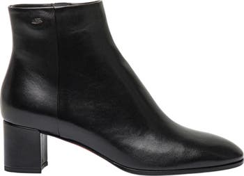Refined on the eye and versatile at heart, this ankle boot brings Santoni's artisanal finesse to the everyday. Crafted from fine leather with a luxuriously tactile and resistant surface, its silhouette is slender yet easy to wear, featuring a tapered toe and a robust block heel. Finished with a discreet inner zipper to preserve the shoe's sleek, uninterrupted lines.