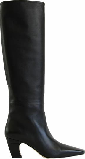 The Meg Boot is made of the softest Italian Nappa leather to give the perfect relaxed, slightly slouched look. The toe is modern, graphic, and squared off with a unique angle which gives the boot a pointy feel. The curved, block heel is all-day comfortable and super chic.
